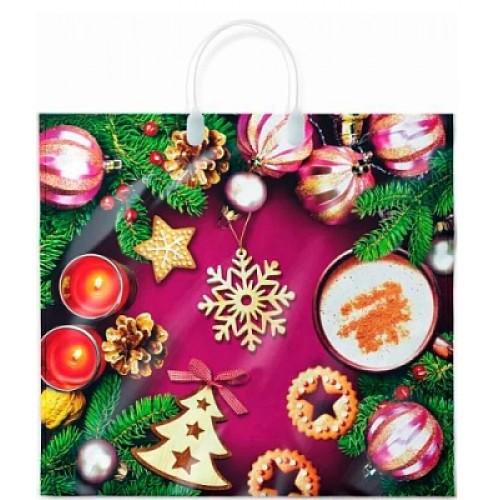 Пакет пласт ручк 37х34+6(80) НГ Печенье (10/100 Арт